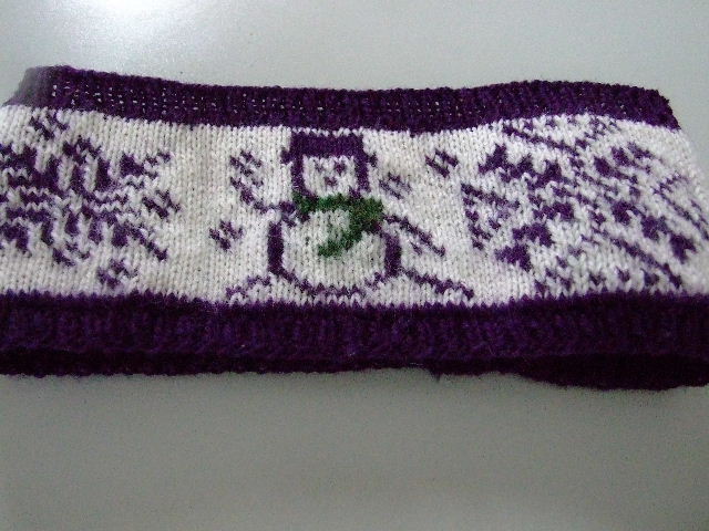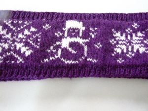 Here is a picture of one of the Ski bands I knitted for my grandsons. I used Palette, (Eggplant). The weight was perfect. I did this little project in reversible, or double knitting. I also figured out how to add in a third color.