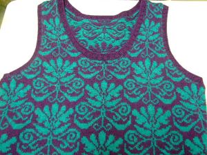 One of the most pleasurable projects that I took on this past year was knitting my Jacquard Vest. I got the yarn and the pattern from Knit Picks. The fingering yarn is called Palette. I love it!!! I used it for this pattern, then for socks, and finally for the double knit ski bands that I knitted for Christmas presents.