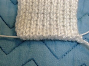 I purposely did this tutorial using a small practice swatch. I also used different colored yarns so that you could see the process better. At least, I hope you can.