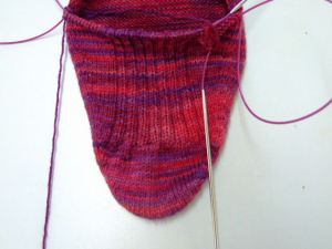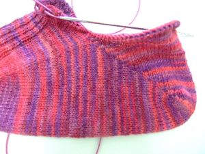 The 3 inch heel construction will still be needed so I will have to borrow a few stitches from the instep in order to work the 18 short row sets for the heel, but that’s OK, it will fit, and that’s what is important.