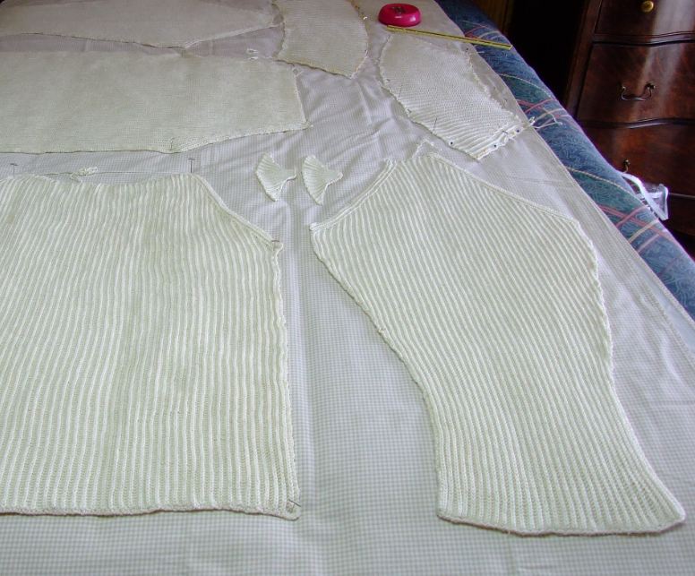 Lesson 5 – I washed my sweater pieces before I put the sweater together. It was kind of scary, but since I had knitted a swatch of the pattern and had washed and dried it, I thought I might as well give it a try.