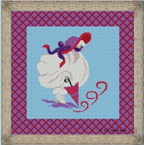 I was having lunch with a friend who is a Red Hat lady the other day, when I mentioned to her that I had designed a pillow top with a Silkie chicken as my subject. Well, that led to an imaginary trip of what if’s- she had a red hat on; she carried a parasol; she was energetic; she was HOT- and on and on. We were laughing at the possibilities the rest of the day. My mind was reeling with ideas, so….home I went just itching to get my hands on my mouse (computer mouse, that is). The picture below is the results. I have both a knitted version and a cross stitch version.
