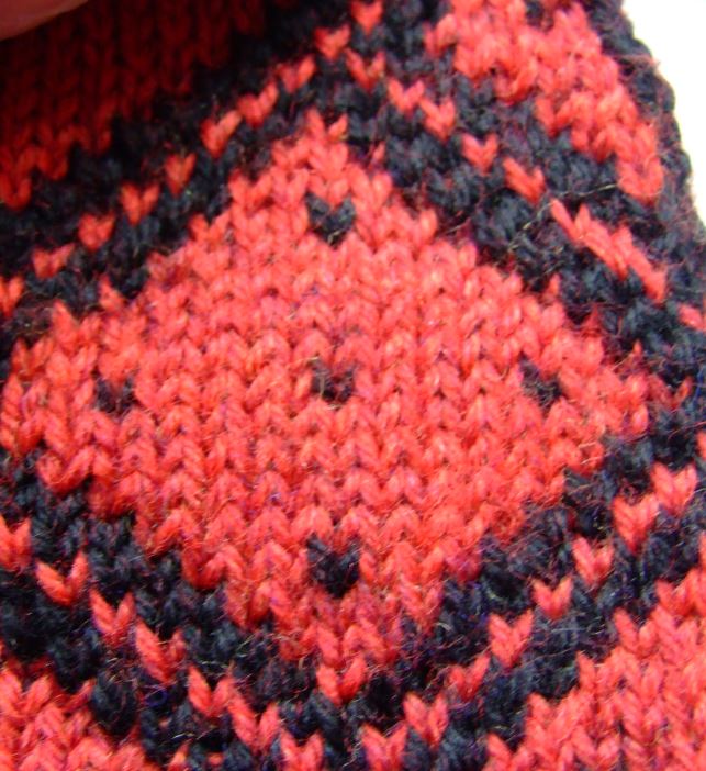 When I finished these “Nordic Rose” knee highs, I found that they were a bit loose for me. At first, I just washed them in the washer and put them into the dryer to shrink them a mite. That helped a little but they were still a tad to big around the ankle.