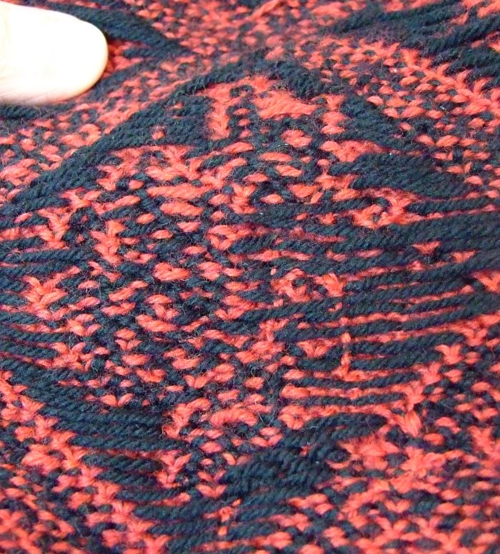 The next time I make this design, I will plan my casings in the ribbed( using #2″s) area, use the #3 needle for the calf area before the decreases, then return to the #2 to finish the stocking. That extra stitch per inch in the calf area, allows the knitting to move with you, without seeking a path of least resistance to the ankle- just like water flowing down hill. The secret is to make them long enough to have the elastic ride above the largest calf portion, so that it pulls in just below the knee.