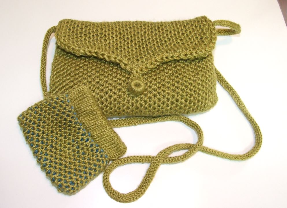 This pattern includes working double knit on the flap, which give you the opportunity to connect the lining with the right side to avoid slippage.  By knitting a dotted lining pattern, your outside flap will hold it’s shape.  I didn’t do it on this one, but I have experimented and found I had better results with the double knitting.