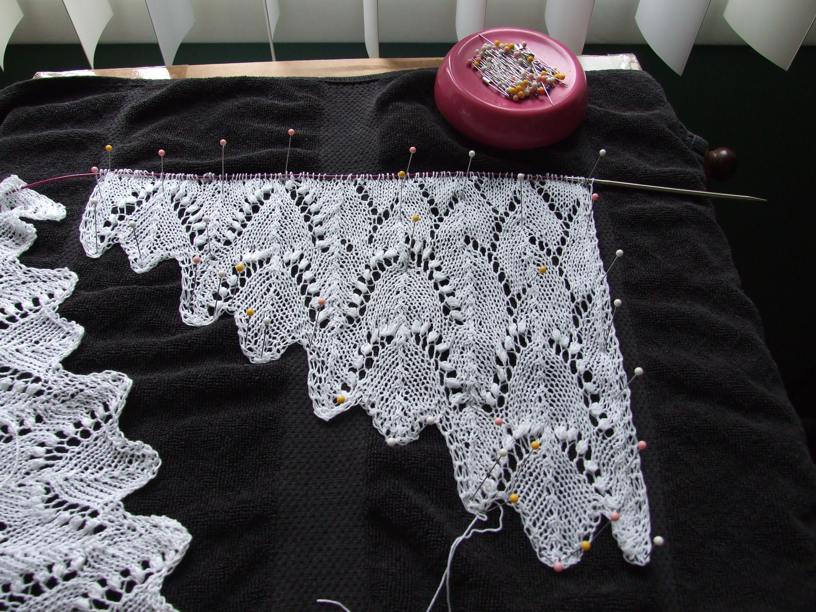 lace curtain finishedSince that time I have had over 700 uploads of the pattern. As a result, I have also had a request for a larger version.  To that end I have designed a 60 inch valance for those of you who have larger windows to cover.  It should go nicely with a 36-48 inch window.