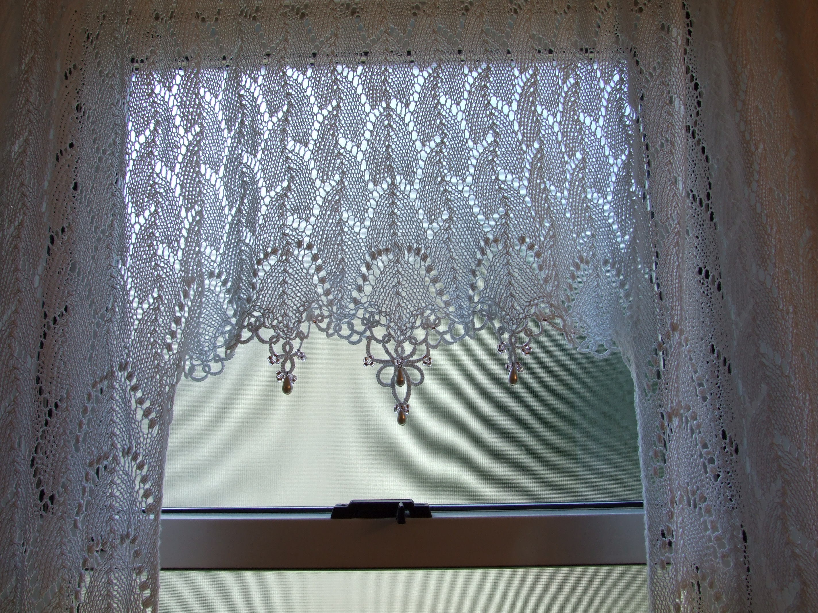 I know that it has been a while since I posted an article on knitting, but I have been busy redecorating my home. Of course that called for a new lace curtain for my bathroom.
