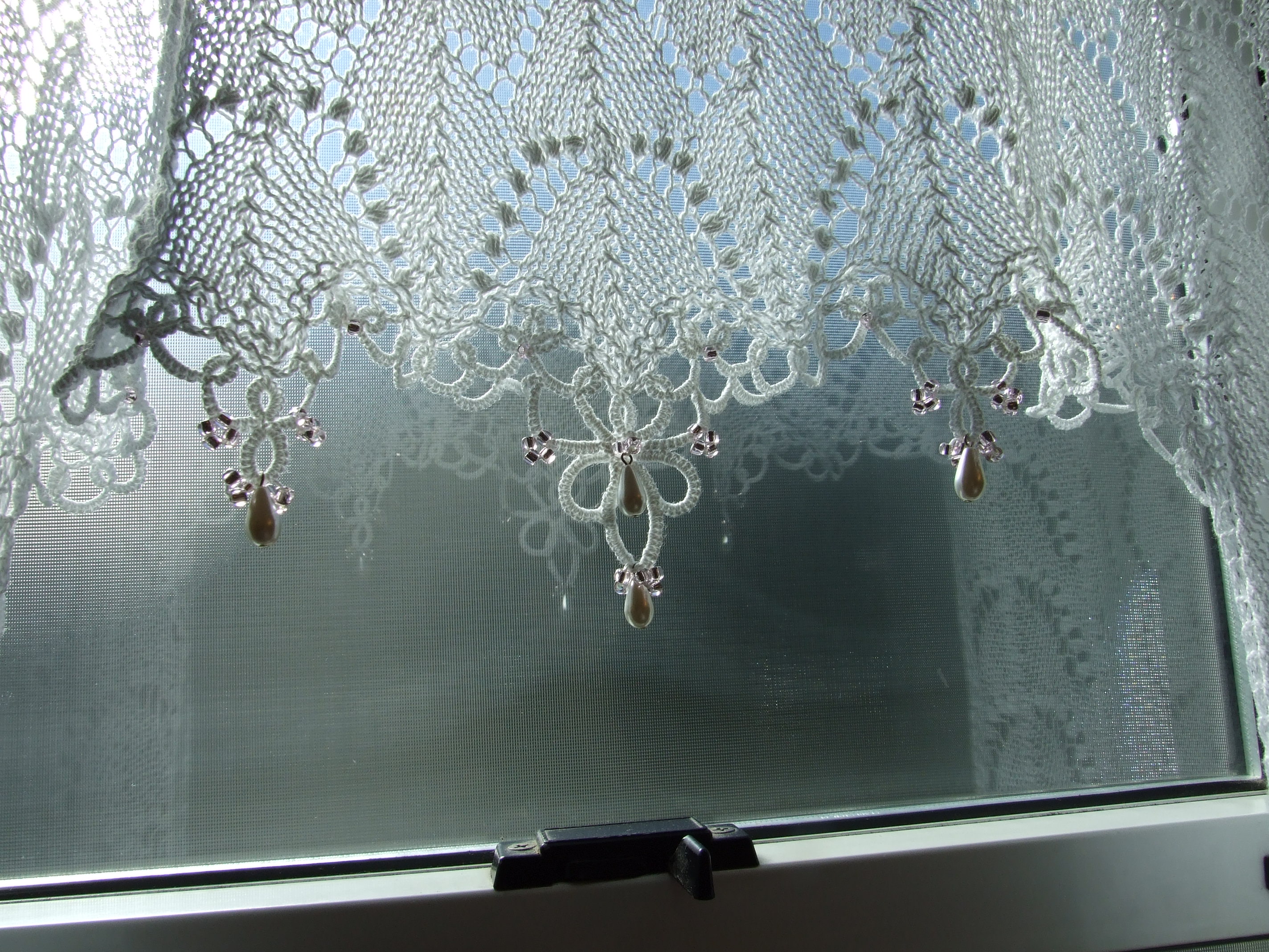 I used the valance pattern that I recently posted, then added a tatted edge with beads to bring a little sparkle into the room.