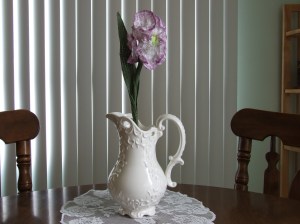 Below is my latest project-crocheted roses and carnations, as well as other flowers.  I began by watching the video and them started tweaking the patterns and idea to suit myself.  I developed a pattern for the leaves after seeing a photo on Pinterest.   As always, I had to take it to the next level, and make it as realistic as possible.  A lot of hours and samples went in to the results, but what fun I had.