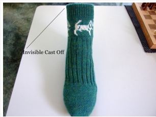 This toe up pattern includes step instructions, giving you the pattern for a fitted left/right toe shaping, ribbed instep, short row heel, double knit picture panel, and instructions for an invisible bind off.