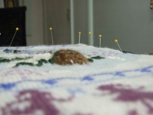 The combination of the Mohair and the 3 D affect made my chicks look like the little “fuzz balls” they really are. They are the first thing people touch when they pick up the pillow and comment, ” Oh my gosh! They look so real!” And so they do.
