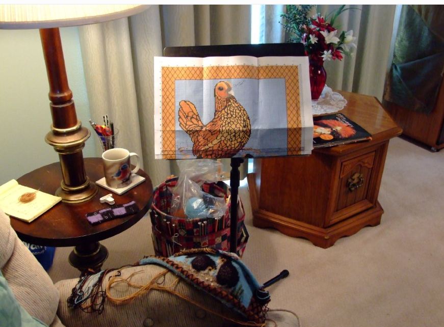 The details on the legs, feet, and beak were done with duplicate stitches and crocheted chains of one and two plies of the various yarns. The various shades on the hen are yarns that have been blended, using of one ply of each color that have been hand spun back together. Check out my post on blending yarns if you are interested .