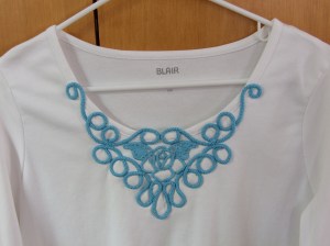 The next photo is of the same idea, only this time I created a Romanian point lace design for both hat and neckline.