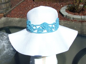 I really like the idea of the crocheted tape lace crown bands combined with some of my crocheted flowers.  I am able to mix and match them to coordinate with whatever outfit I am wearing.  It’s great fun.