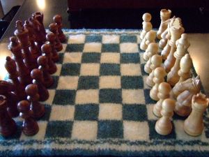 Here is a picture of the large version of my felted/ fulled Chess Board