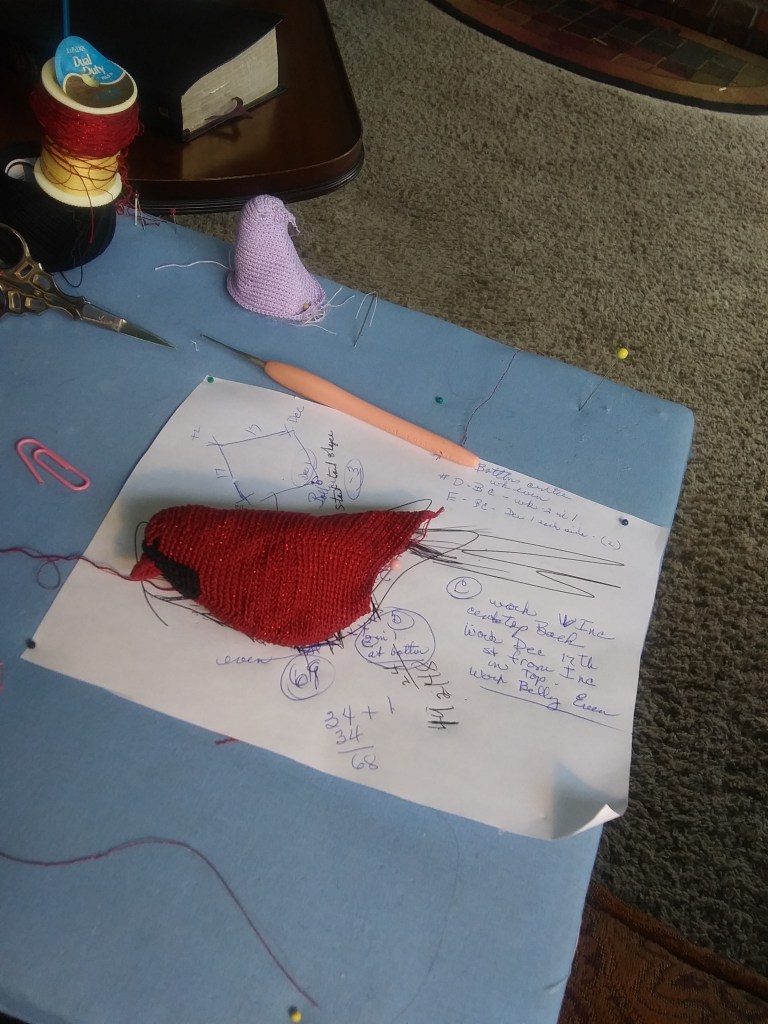 Below is a photo of the Red Cardinal I crocheted for my Christmas tree.